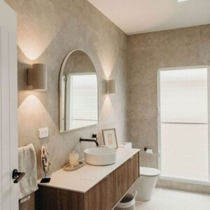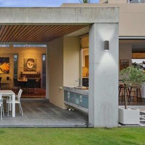 Die beidseitige Lichtabgabe nach oben und unten sorgt für eindrucksvolle Lichtakzente an Fassaden oder im Badezimmer – modern, warm und einladend.