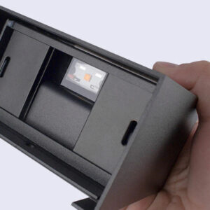 Mit ihrer klaren, modernen Form fügt sie sich harmonisch in Gartenmauern, Zäune oder Terrassen ein. -