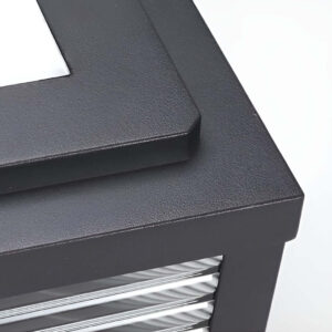 Modernes Design: Die klare, quadratische Form mit geripptem Glas sorgt für eine elegante und zeitlose Optik im Außenbereich.